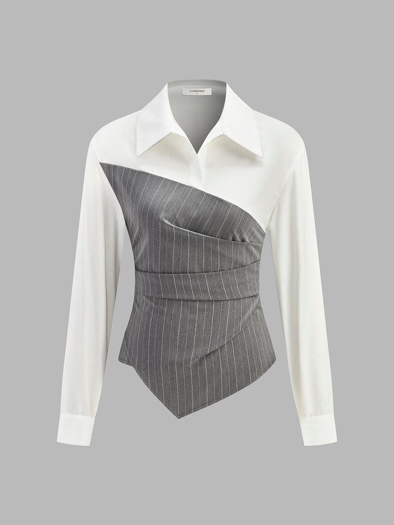 Modaya Uygun Renk Bloklu Asimetrik Çizgili Gömlek