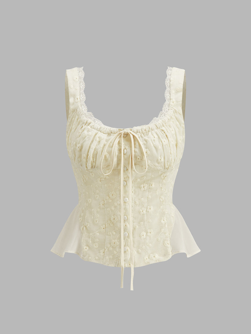 Çiçek Desenli Zarif Peplum Bluz, İnce Dantel Kenar ve Şifon Tasarımı ile