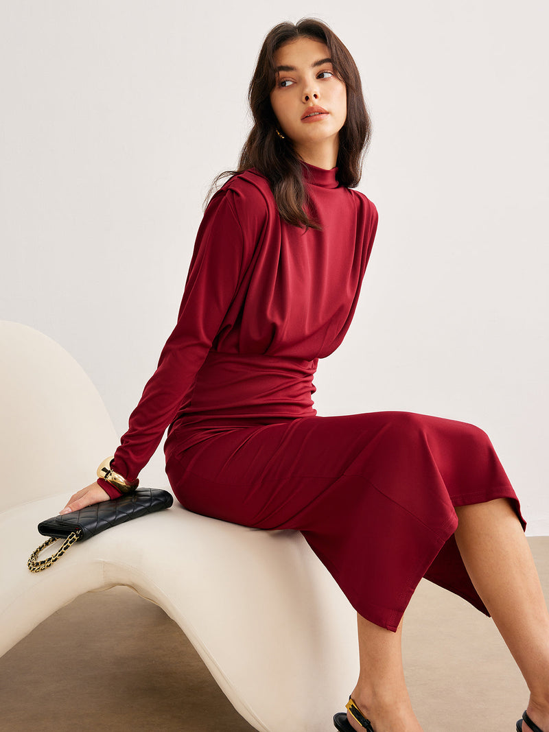Yüzde 100 Likra Sıfır Yaka Plise Abiye Jersey Elbise