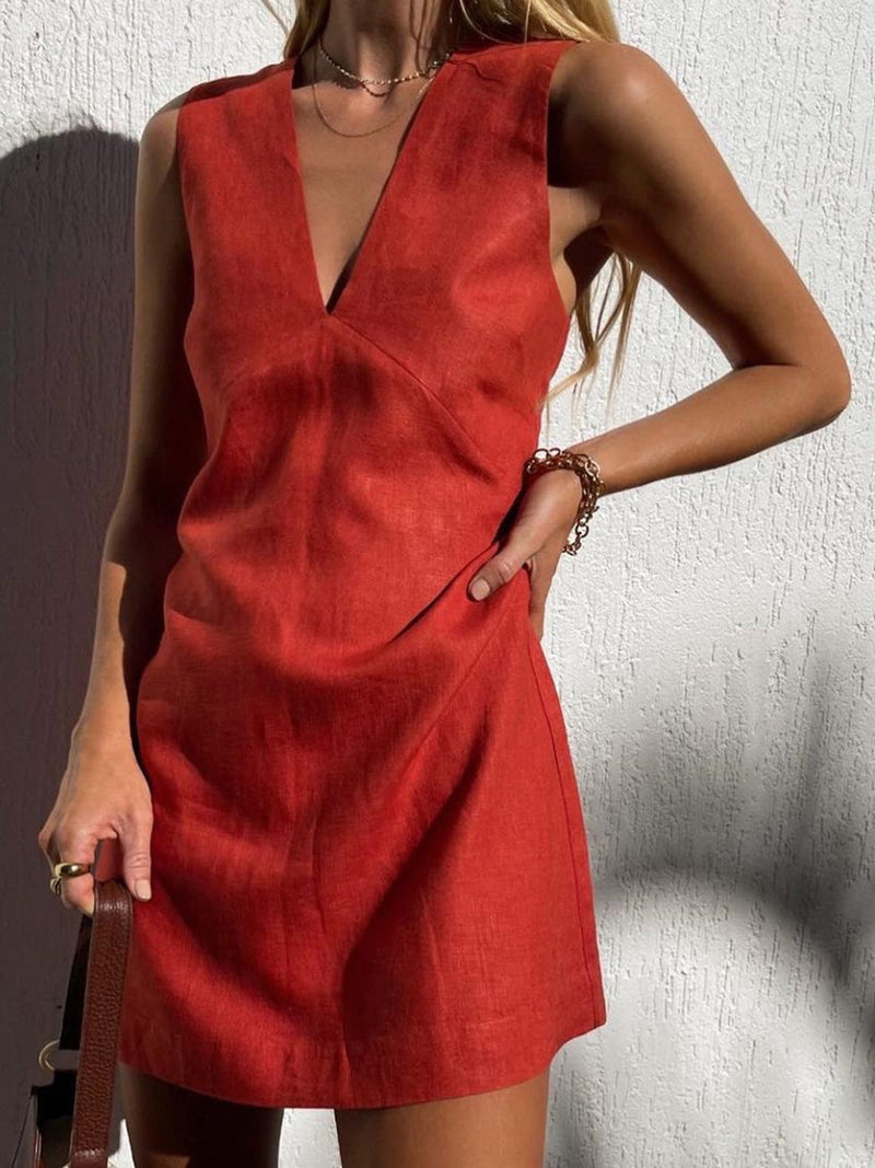 Pamuk ve Keten V Yaka Kısa Elbise