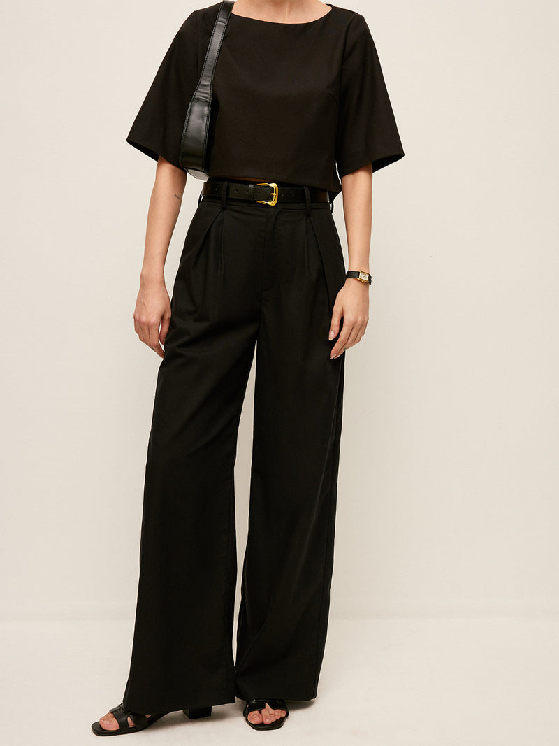 Şık Yüksek Bel Geniş Paça Pantolon, Şık Kemer ve Pratik Ceplerle