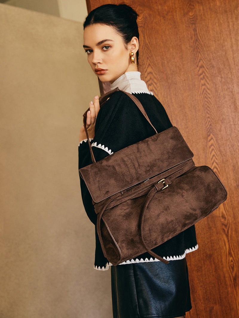 İki Yönlü Dokuma Klipsli Omuz Çantası