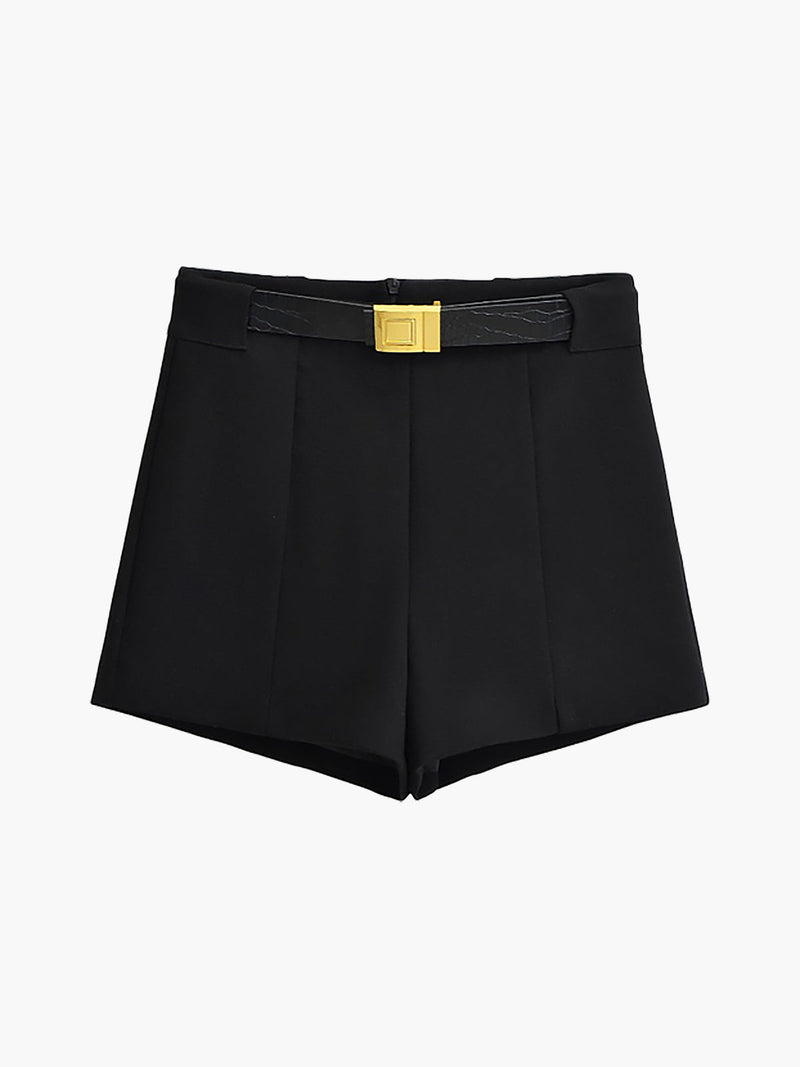 Şık Yüksek Bel Kemerli Fermuarlı Jersey Şortlar