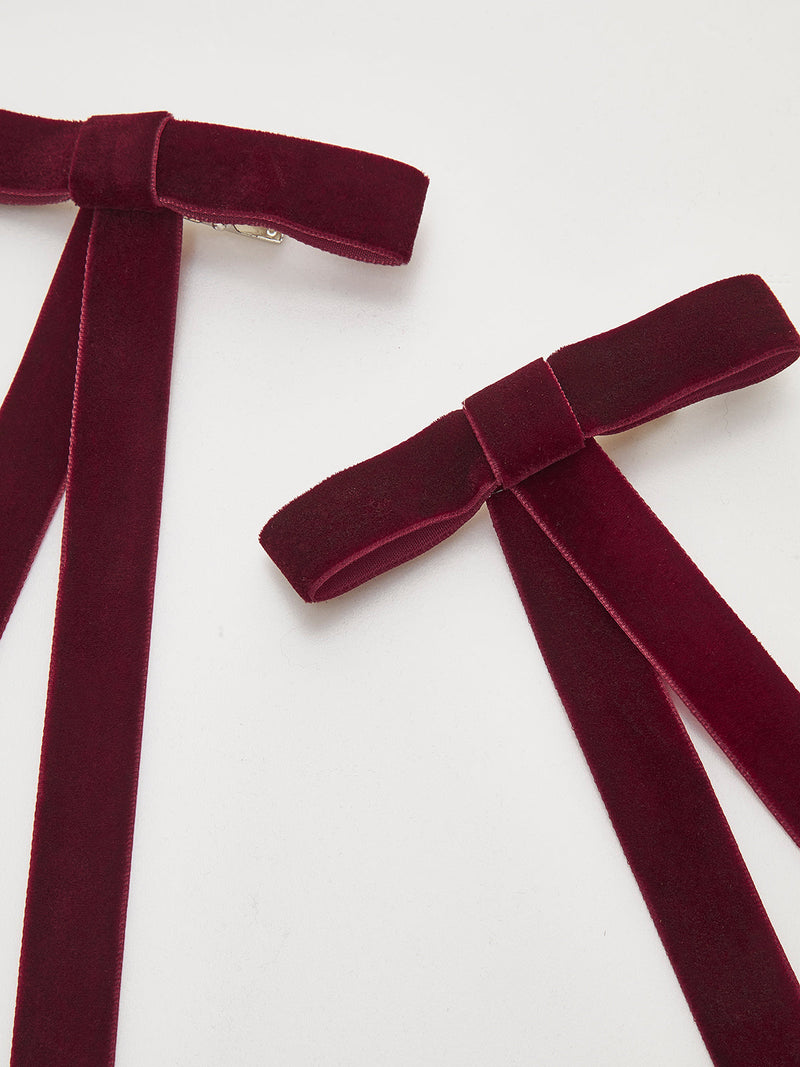 Şık Kadife Fiyonklı Saç Klipsi Seti - 2 Parça