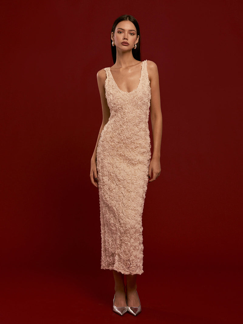 Romantik 3D Çiçekli Abiye Askılı Elbise