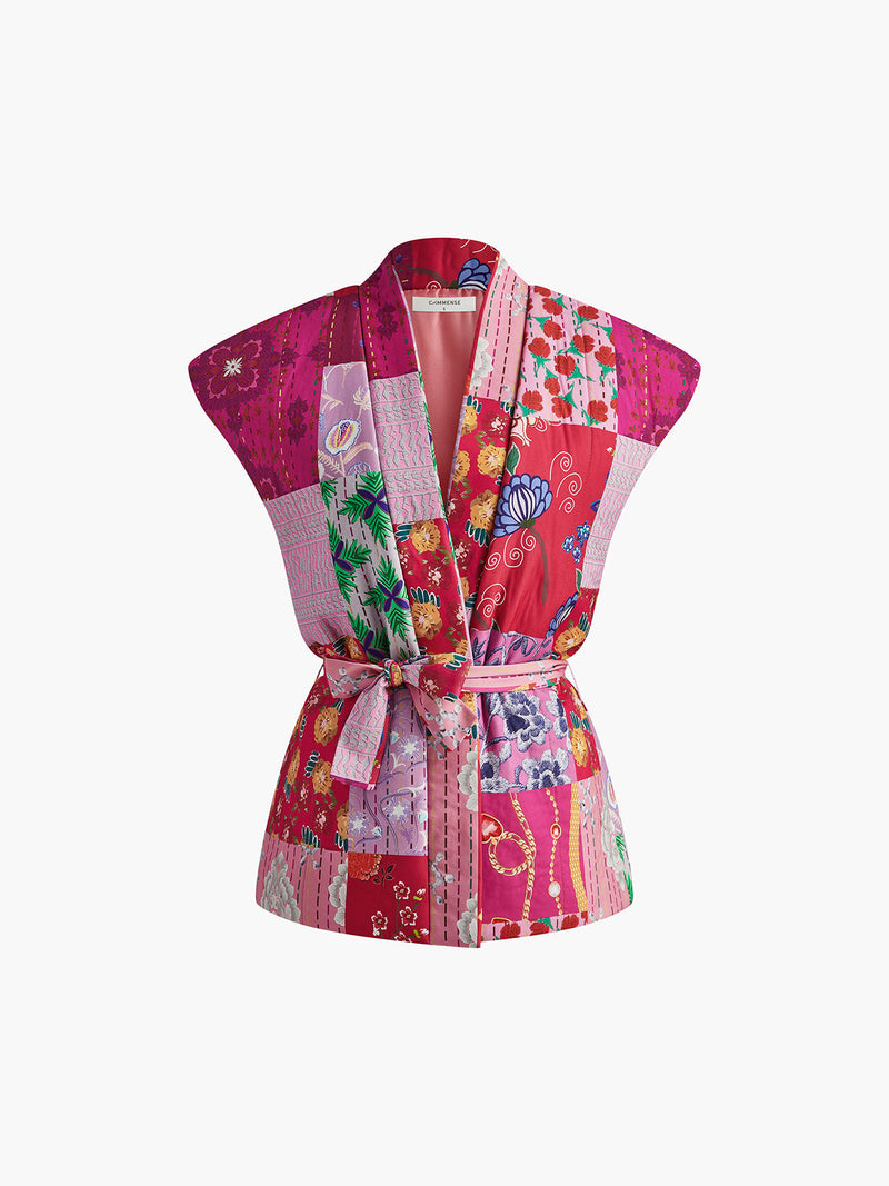 Kısa Kol Bohem Desenli Kemerli Yelek