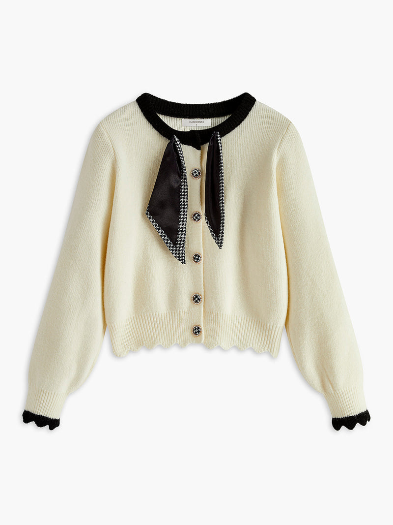 Zıt Renkli Kravat Yakalı Dalga Kenarlı Hırka