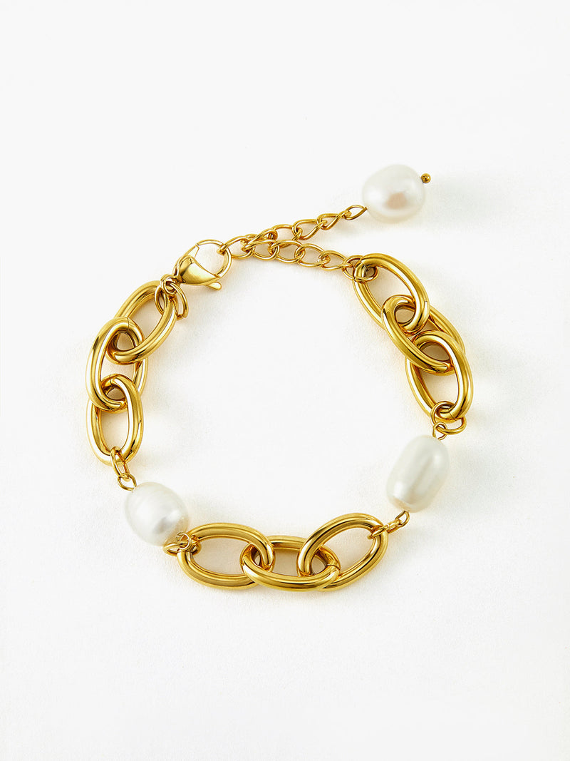 Oval İnci Altın Zincir Bilezik