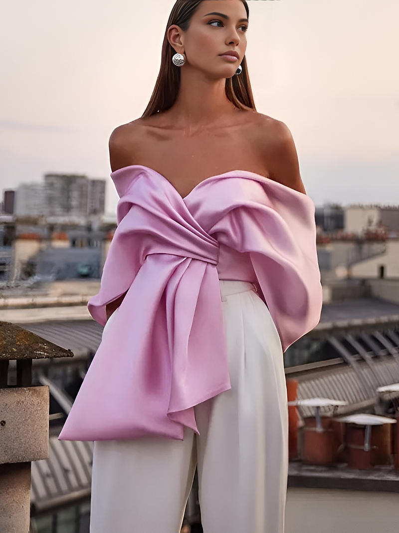 Saten Pileli Kapalı Omuz Üst
