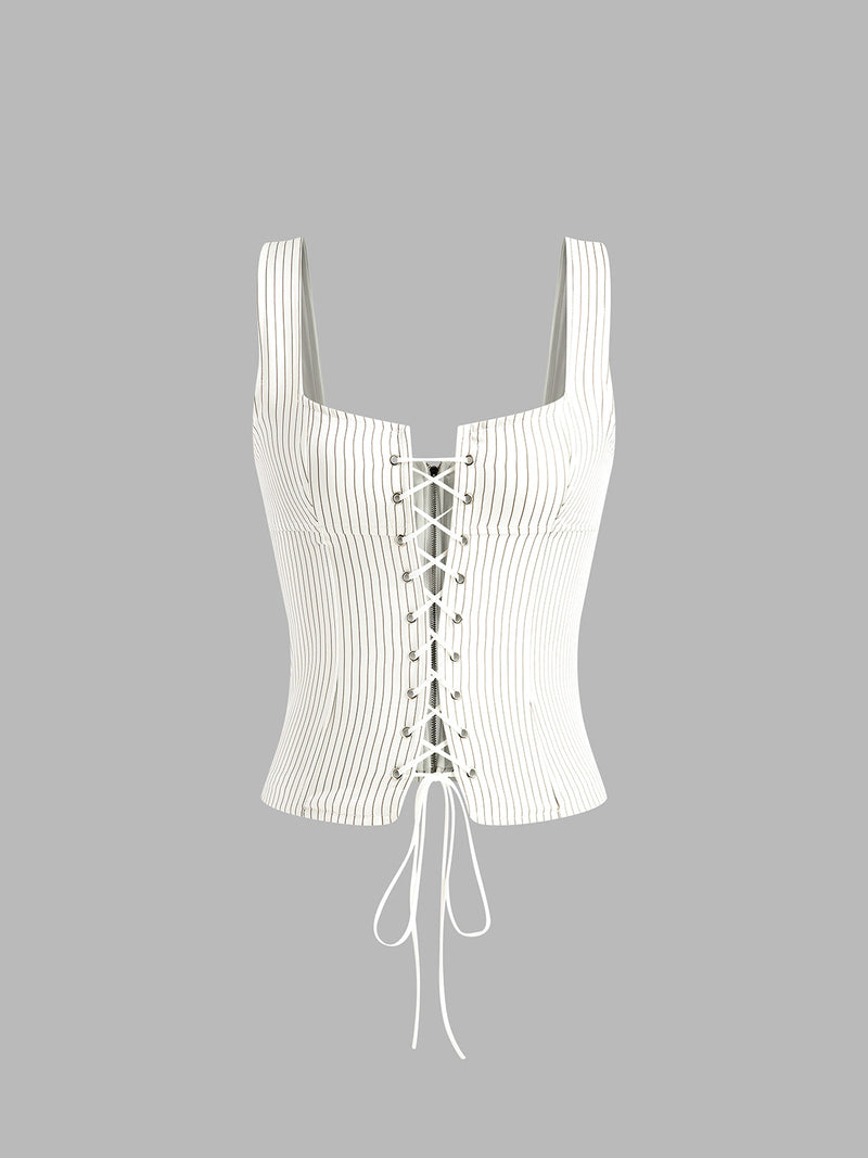 İnce Çizgili İpli ve Fermuarlı Atlet